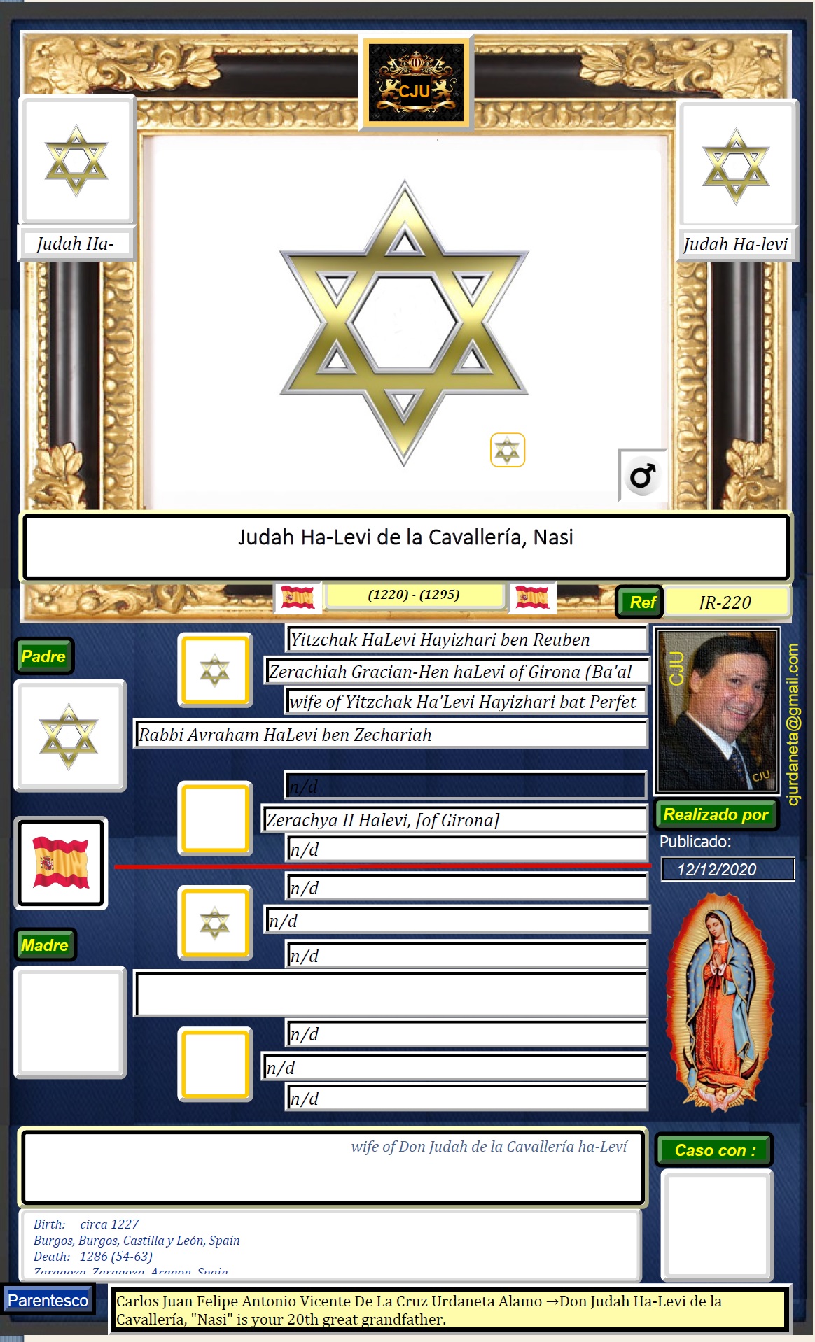 20° Bisabuelo/ Great Grandfather de: Carlos Juan Felipe Antonio Vicente De La Cruz Urdaneta Alamo →Don Judah Ha-Levi de la Cavallería, "Nasi" is your 20th great grandfather.