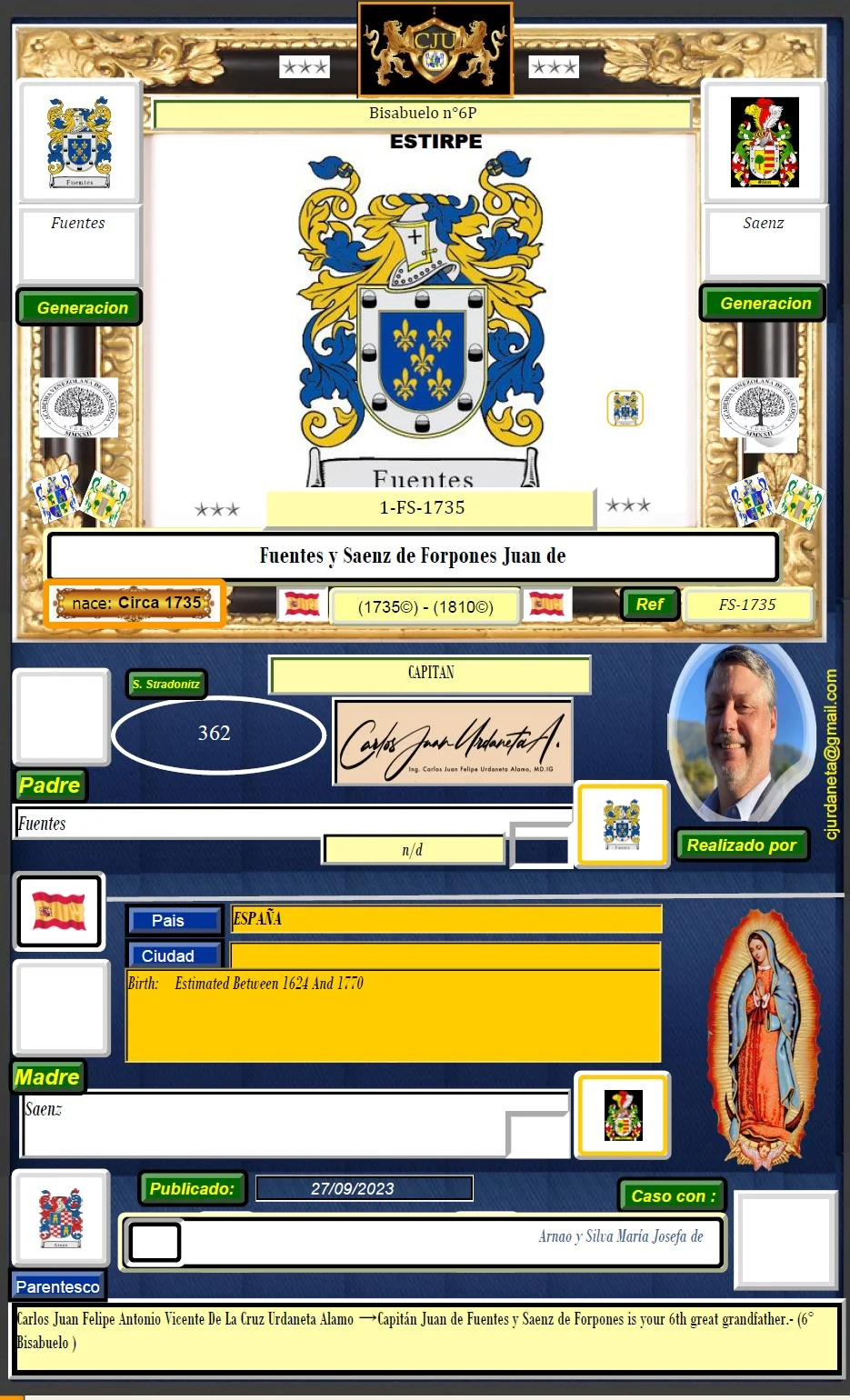 Alfonso Pérez de Guzmán, 1. señor de Gibraleón is your 14th great grandfather.of→ Carlos Juan Felipe Antonio Vicente De La Cruz Urdaneta Alamo→ Dr. Enrique Jorge Urdaneta Lecuna
