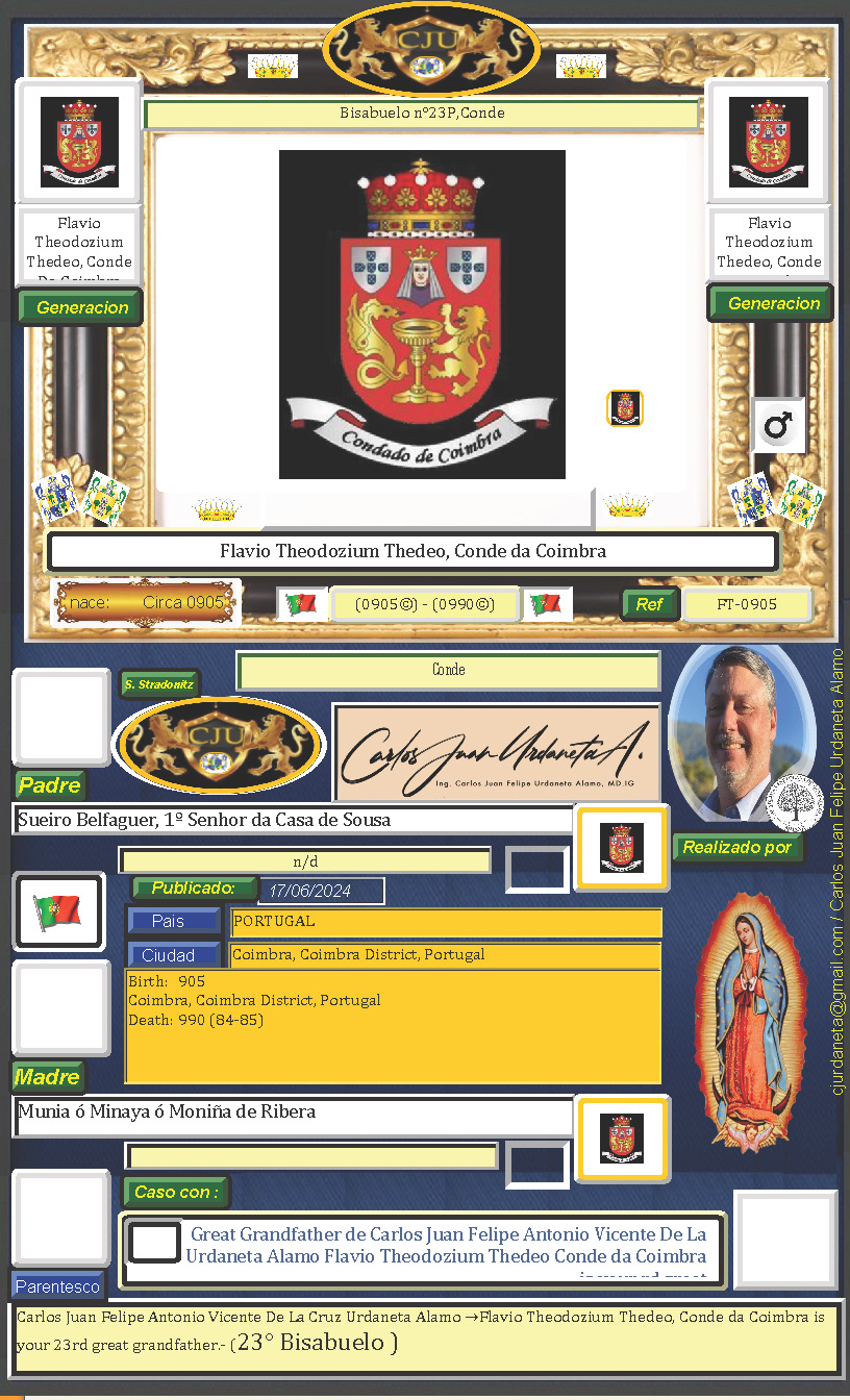 →Flavio Theodozium Thedeo, Conde da Coimbra is your 23rd great grandfather.