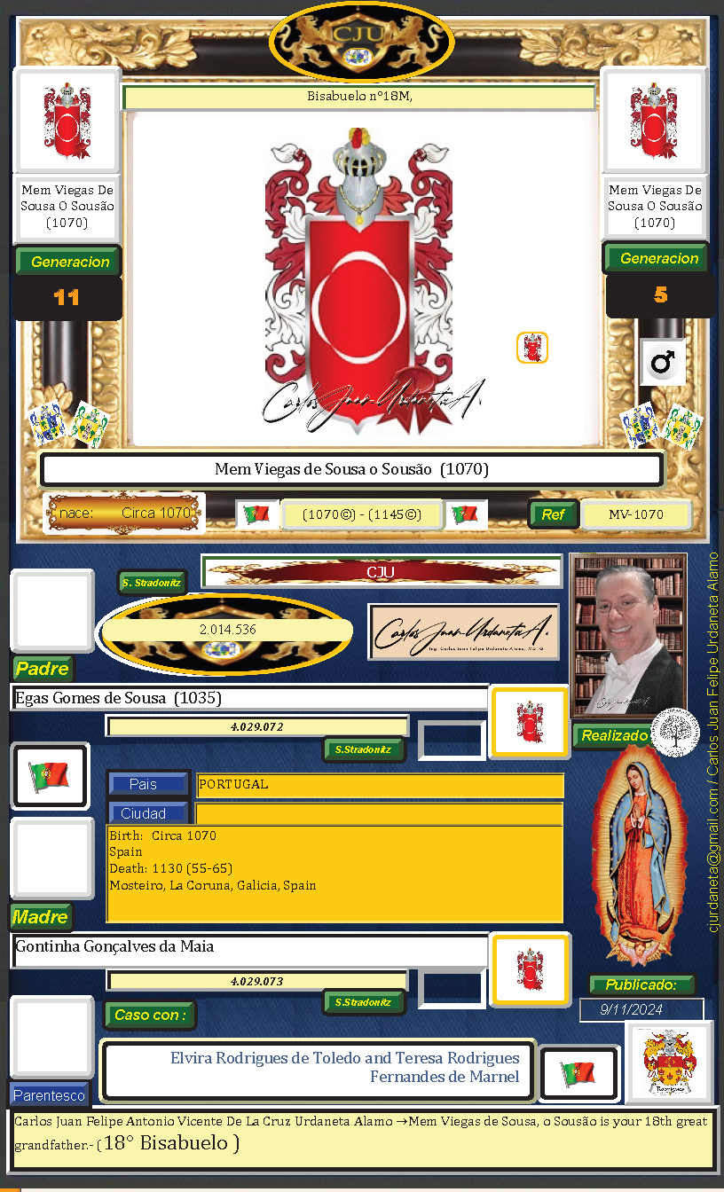 18° Bisabuelo/ Great Grandfather de: Carlos Juan Felipe Antonio Vicente De La Cruz Urdaneta Alamo →Mem Viegas de Sousa, o Sousão is your 18th great grandfather.