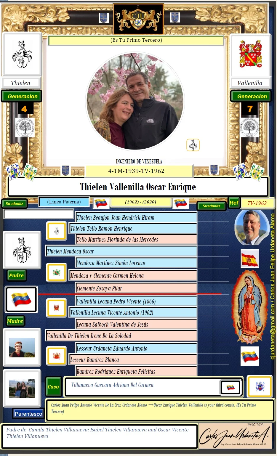 Carlos Juan Felipe Antonio Vicente De La Cruz Urdaneta Alamo →Oscar Enrique Thielen Vallenilla is your third cousin.(Es Tu Primo Tercero)